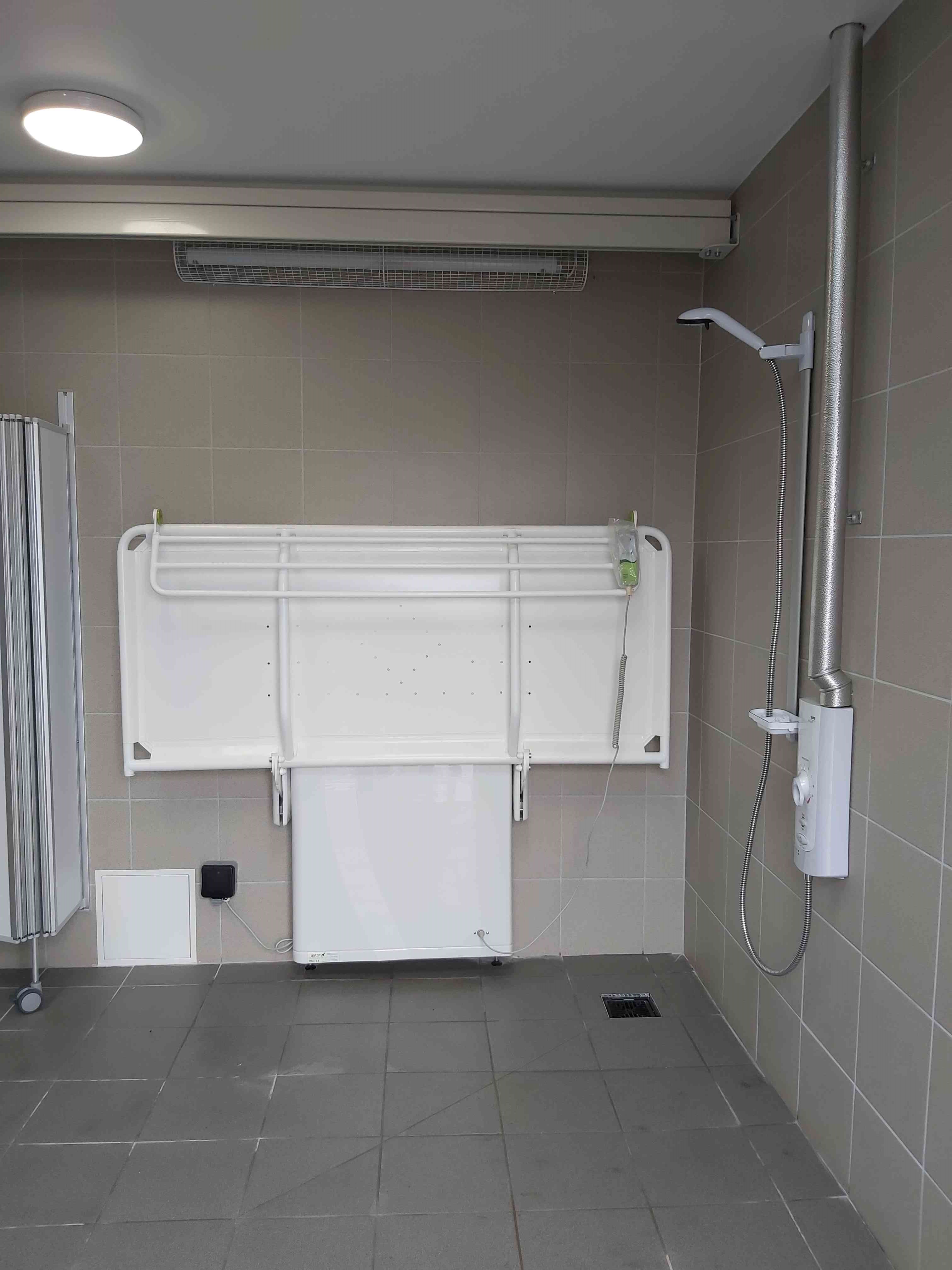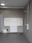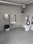 FACILITIES: Bench – Height Adjustable, Adult Sized, Wall Mounted | Hoist – Ceiling | Peninsular Toilet | Non-Slip Floor | Floor Space (sq. m) – 12 | Emergency Alarm | Privacy Screen | Paper Roll Radar Key | Managed | Locked Accessible Shower | Colostomy Shelf
