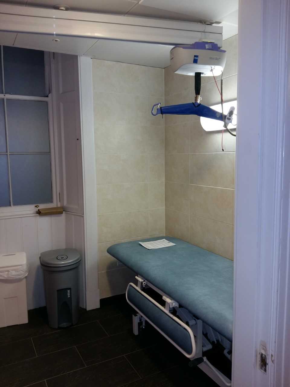 FACILITIES: Bench – Height Adjustable, Adult Sized, Free Standing | Hoist – Ceiling | Peninsular Toilet | Non-Slip Floor | Floor Space (sq. m) – 12 | Emergency Alarm | Privacy Screen | Paper Roll | Managed