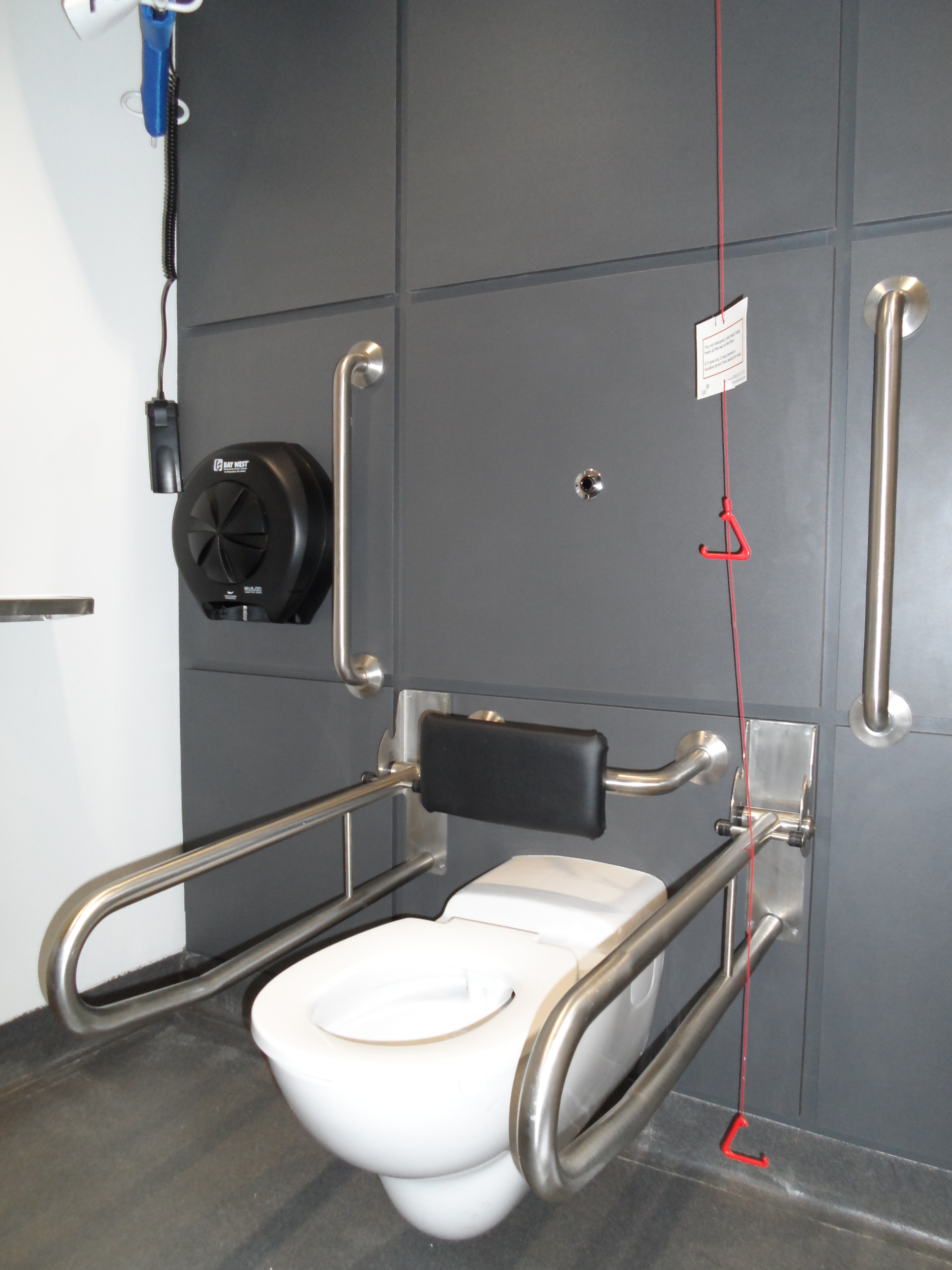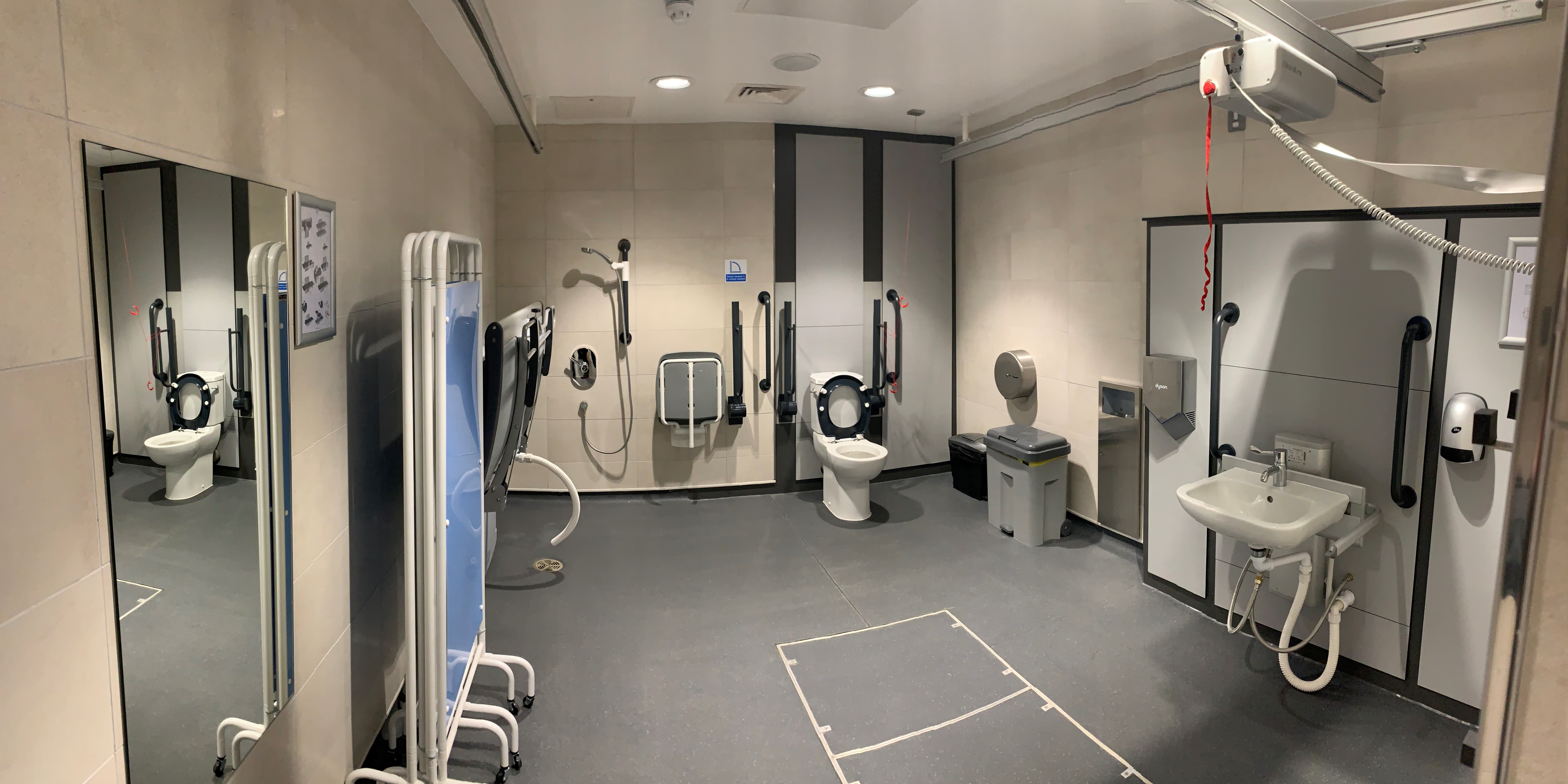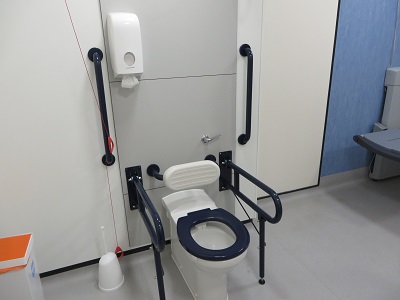 FACILITIES: Bench – Height Adjustable, Adult Sized, Wall Mounted | Hoist – Ceiling | Peninsular Toilet | Non-Slip Floor | Floor Space (sq. m) – 12 | Emergency Alarm | Paper Roll | Managed | Locked