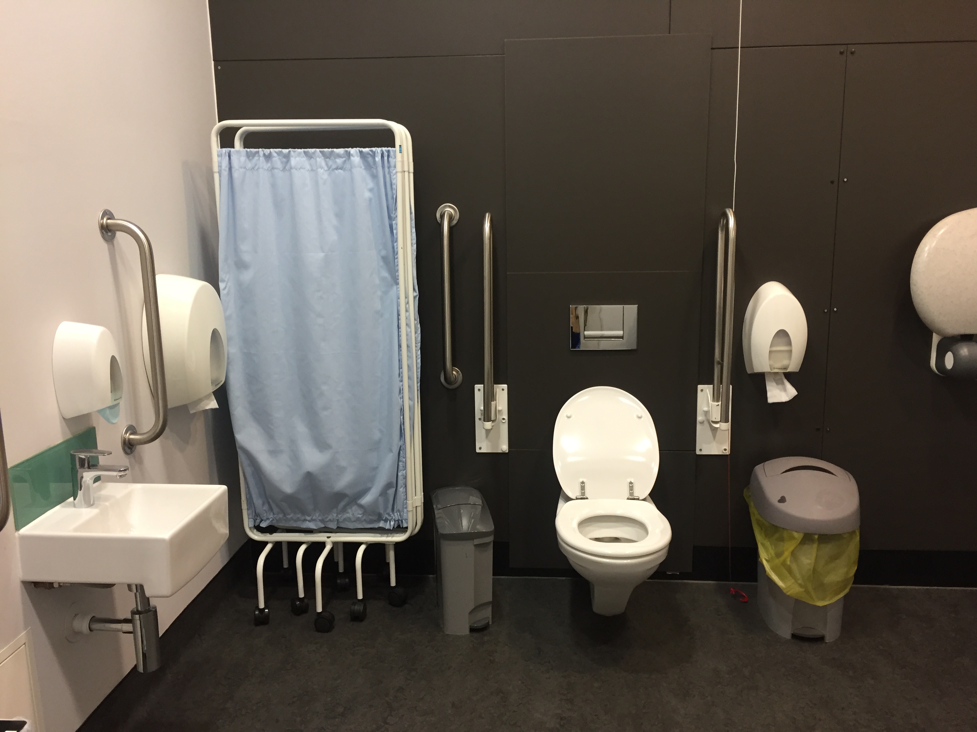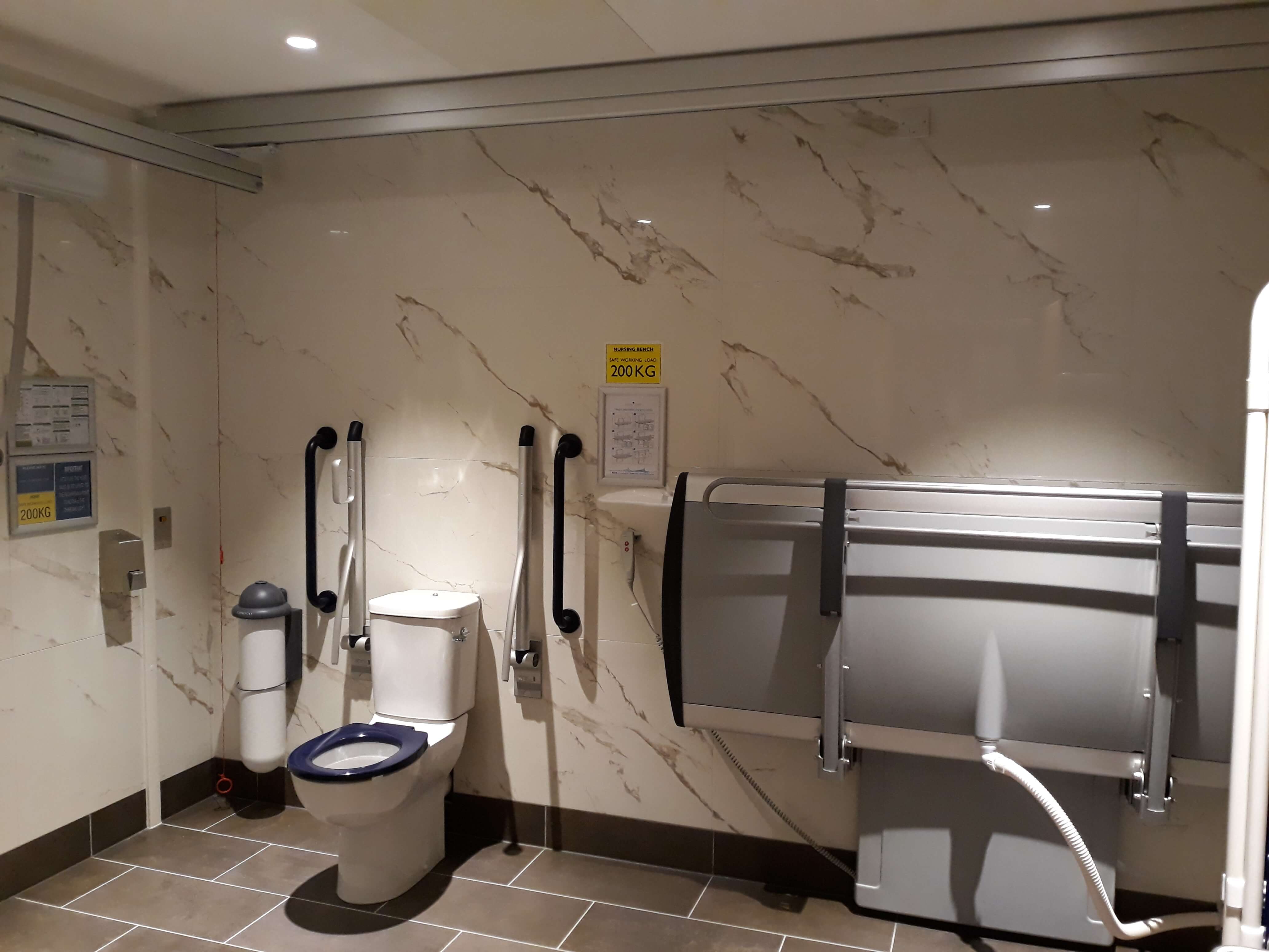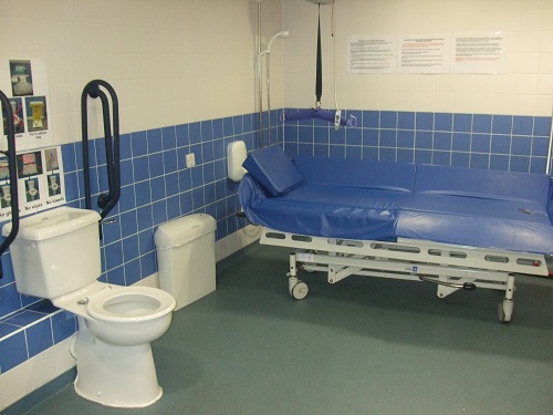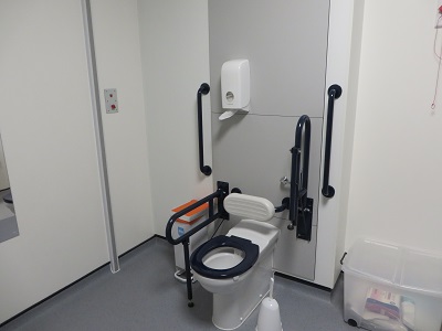 FACILITIES: Bench – Height Adjustable, Adult Sized, Free Standing | Hoist – Ceiling | Peninsular Toilet | Non-Slip Floor | Floor Space (sq. m) – 12 | Emergency Alarm | Privacy Screen | Paper Roll | Managed