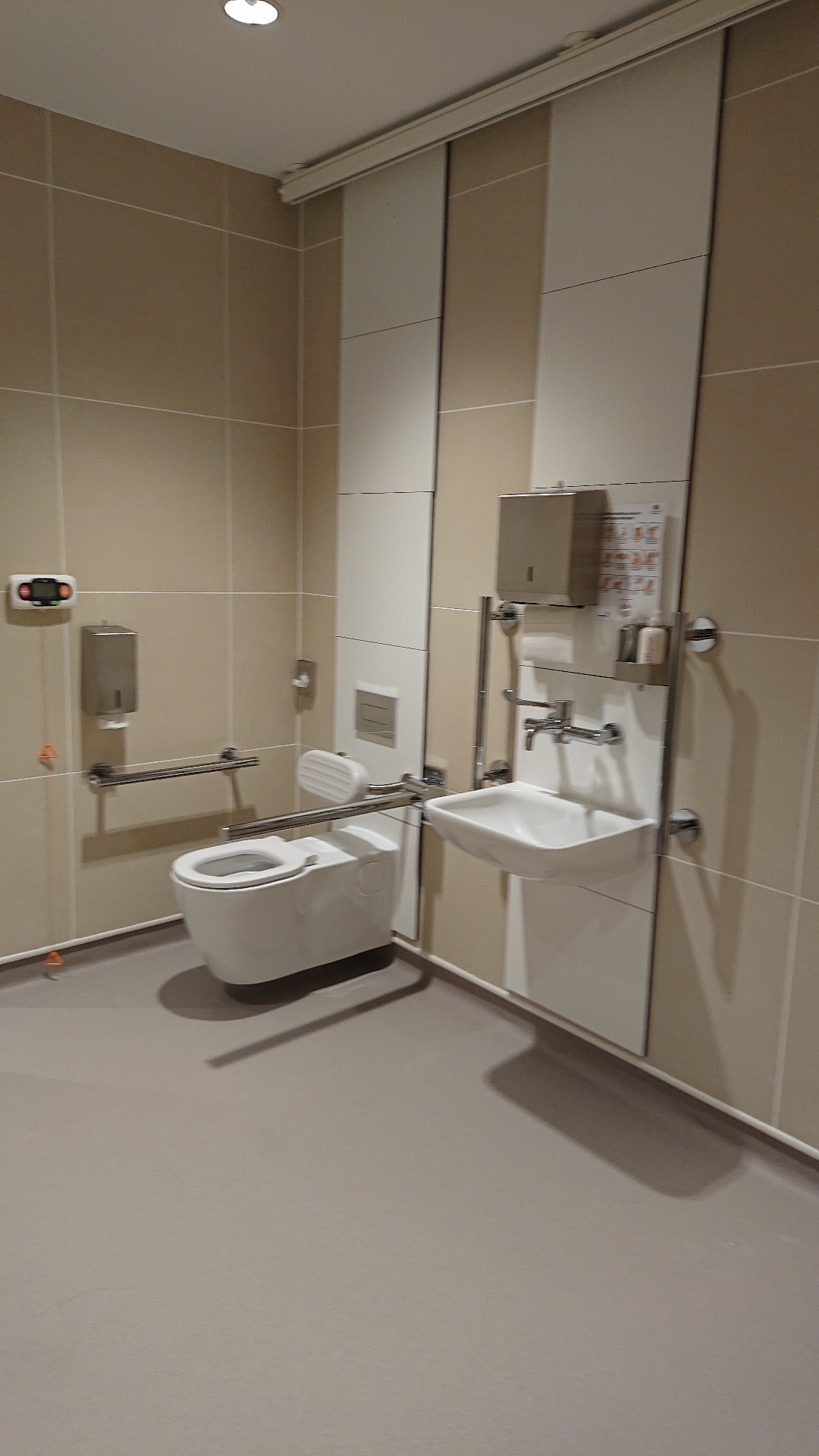 The facility is located on the first floor to the far end of the food court. A Radar key can be borrowed from Customer Services.
