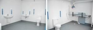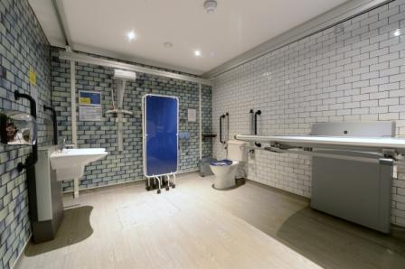 FACILITIES: Bench – Height Adjustable, Adult Sized, Free Standing | Hoist – Ceiling | Peninsular Toilet | Height Adjustable Washbasin | Non-Slip Floor | Floor Space (sq. m) – 12 | Emergency Alarm | Paper Roll | Managed Locked