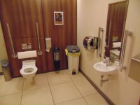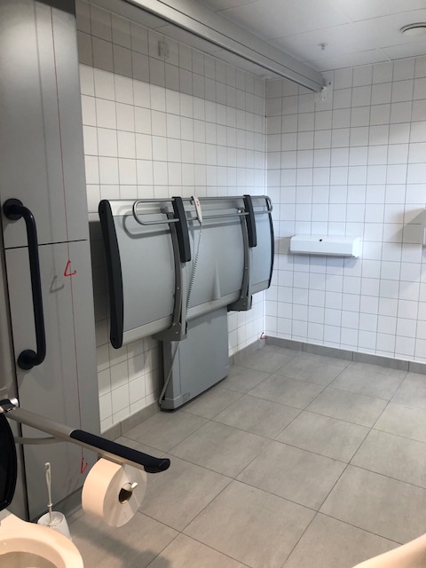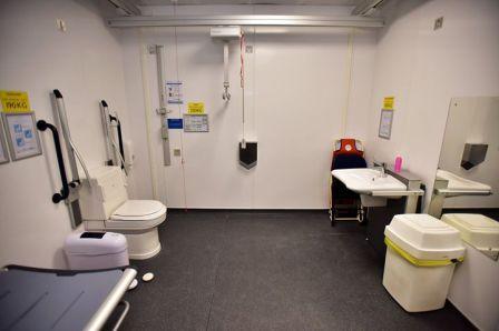 FACILITIES: Bench – Height Adjustable, Adult Sized, Free Standing | Hoist – Ceiling | Peninsular Toilet | Non-Slip Floor | Floor Space (sq. m) – 17 | Emergency Alarm | Privacy Screen | Paper Roll | Managed | Locked