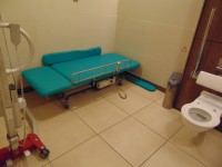 FACILITIES: Bench – Height Adjustable, Adult Sized, Free Standing | Hoist – Mobile | Peninsular Toilet | Floor Space (sq. m) – 12 | Emergency Alarm | Privacy Screen | Paper Roll | Managed