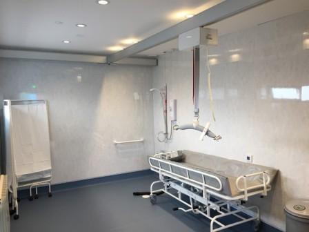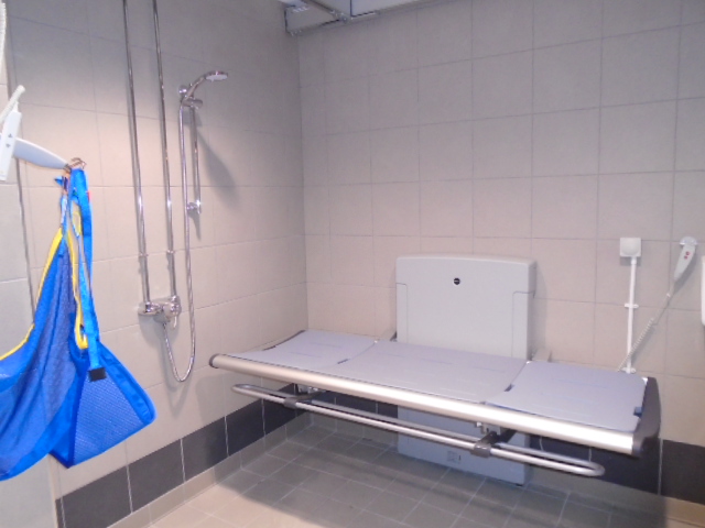 FACILITIES: Bench – Height Adjustable, Adult Sized, Free Standing | Hoist – Ceiling | Peninsular Toilet | Non-Slip Floor | Floor Space (sq. m) – 7.0 | Emergency Alarm | Managed | Accessible Shower
