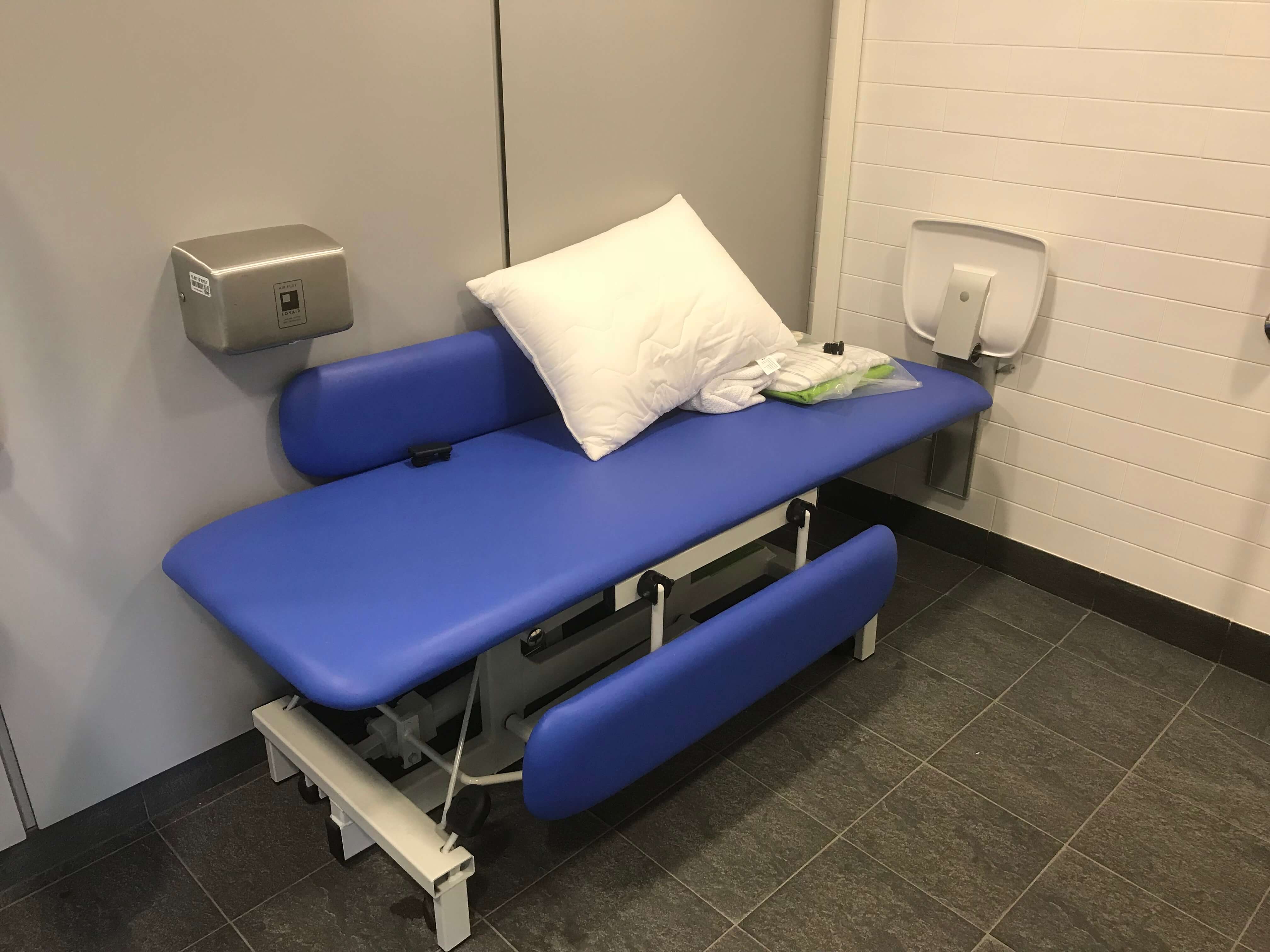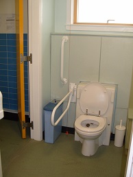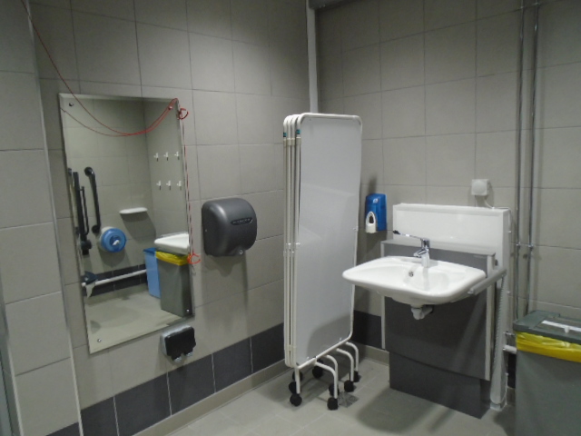 FACILITIES: Bench – Height Adjustable, Adult Sized, Free Standing | Hoist – Ceiling | Peninsular Toilet | Non-Slip Floor | Floor Space (sq. m) – 12 | Emergency Alarm | Privacy Screen | Paper Roll | Radar Key | Managed | Locked Accessible Shower