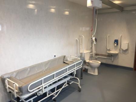 FACILITIES: Bench – Height Adjustable, Adult Sized, Free Standing | Hoist – Ceiling | Peninsular Toilet | Height Adjustable Washbasin | Non-Slip Floor | Floor Space (sq. m) – 12 | Emergency Alarm | Privacy Screen | Paper Roll Radar Key | Managed | Locked | Accessible Shower | Colostomy Shelf