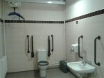 FACILITIES: Bench – Height Adjustable, Adult Sized, Wall Mounted | Hoist – Ceiling | Peninsular Toilet | Height Adjustable Washbasin | Non-Slip Floor | Floor Space (sq. m) – 7.0 | Emergency Alarm | Paper Roll | Radar Key Managed | Locked