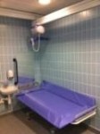 FACILITIES: Bench – Height Adjustable, Adult Sized, Free Standing | Hoist – Ceiling | Peninsular Toilet | Non-Slip Floor | Floor Space (sq. m) – 12 | Emergency Alarm | Managed | Locked