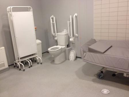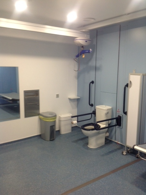FACILITIES: Bench – Height Adjustable, Adult Sized, Free Standing | Hoist – Ceiling | Peninsular Toilet | Non-Slip Floor | Floor Space (sq. m) – 12 | Emergency Alarm | Managed | Locked