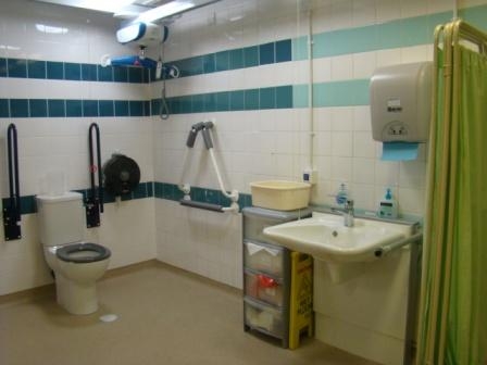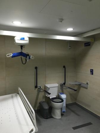 FACILITIES: Bench – Height Adjustable, Adult Sized, Wall Mounted | Hoist – Ceiling | Peninsular Toilet | Non-Slip Floor | Floor Space (sq. m) – 12 | Emergency Alarm | Privacy Screen | Paper Roll Radar Key | Managed | Locked
