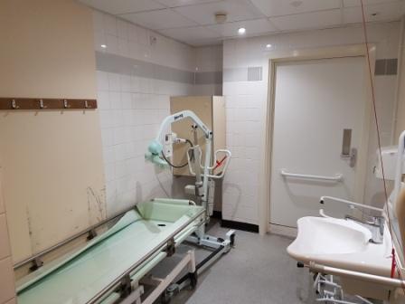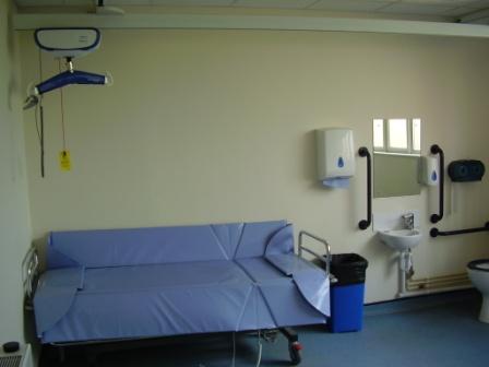 FACILITIES: Bench – Height Adjustable, Adult Sized, Free Standing | Hoist – Ceiling | Peninsular Toilet | Height Adjustable Washbasin | Non-Slip Floor | Floor Space (sq. m) – 16 | Emergency Alarm | Privacy Screen | Paper Roll Managed | Locked