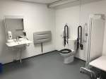 FACILITIES: Bench – Height Adjustable, Adult Sized, Free Standing | Hoist – Ceiling | Peninsular Toilet | Height Adjustable Washbasin | Non-Slip Floor | Floor Space (sq. m) – 12 | Emergency Alarm | Privacy Screen | Paper Roll Managed | Locked | Colostomy Shelf