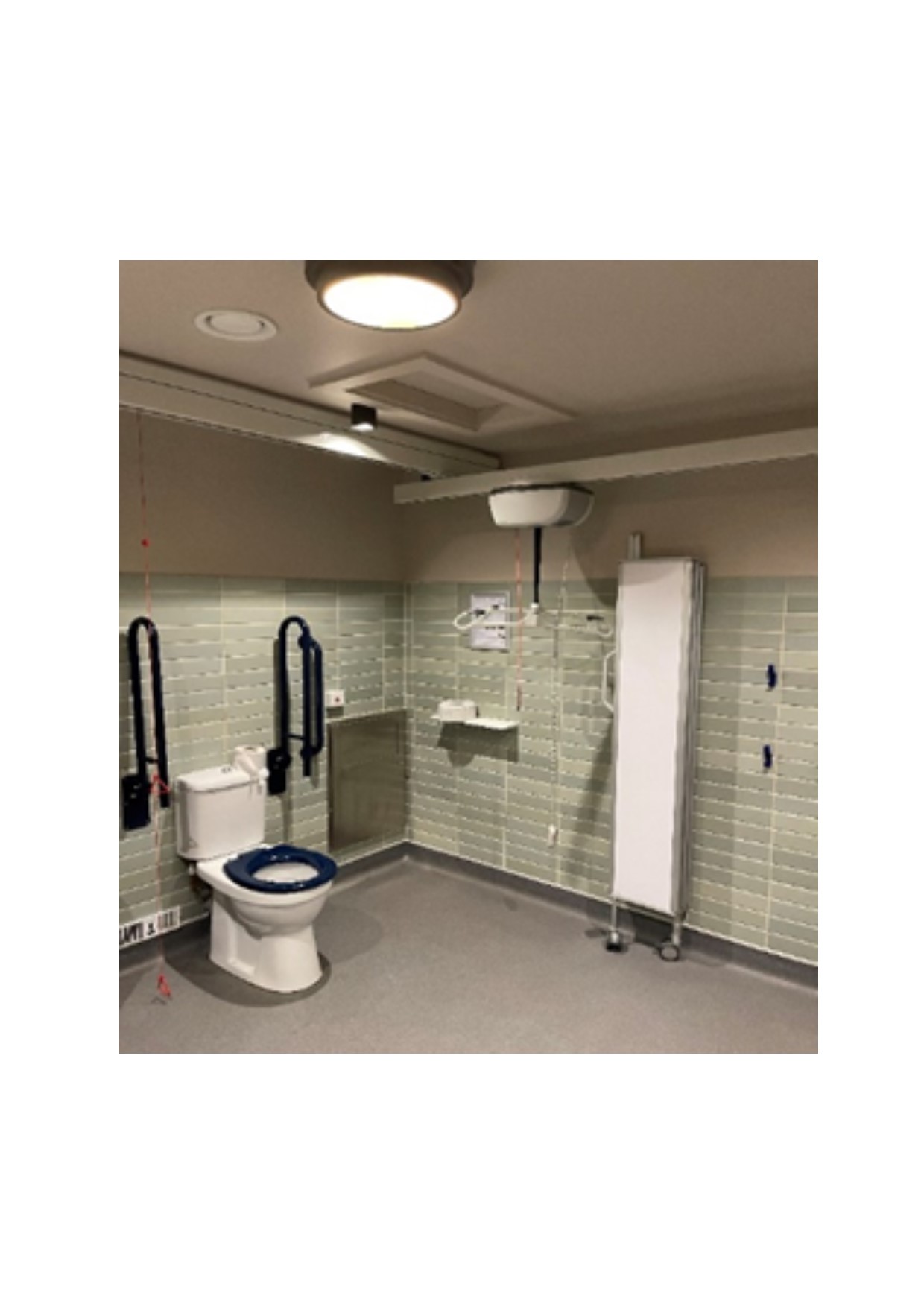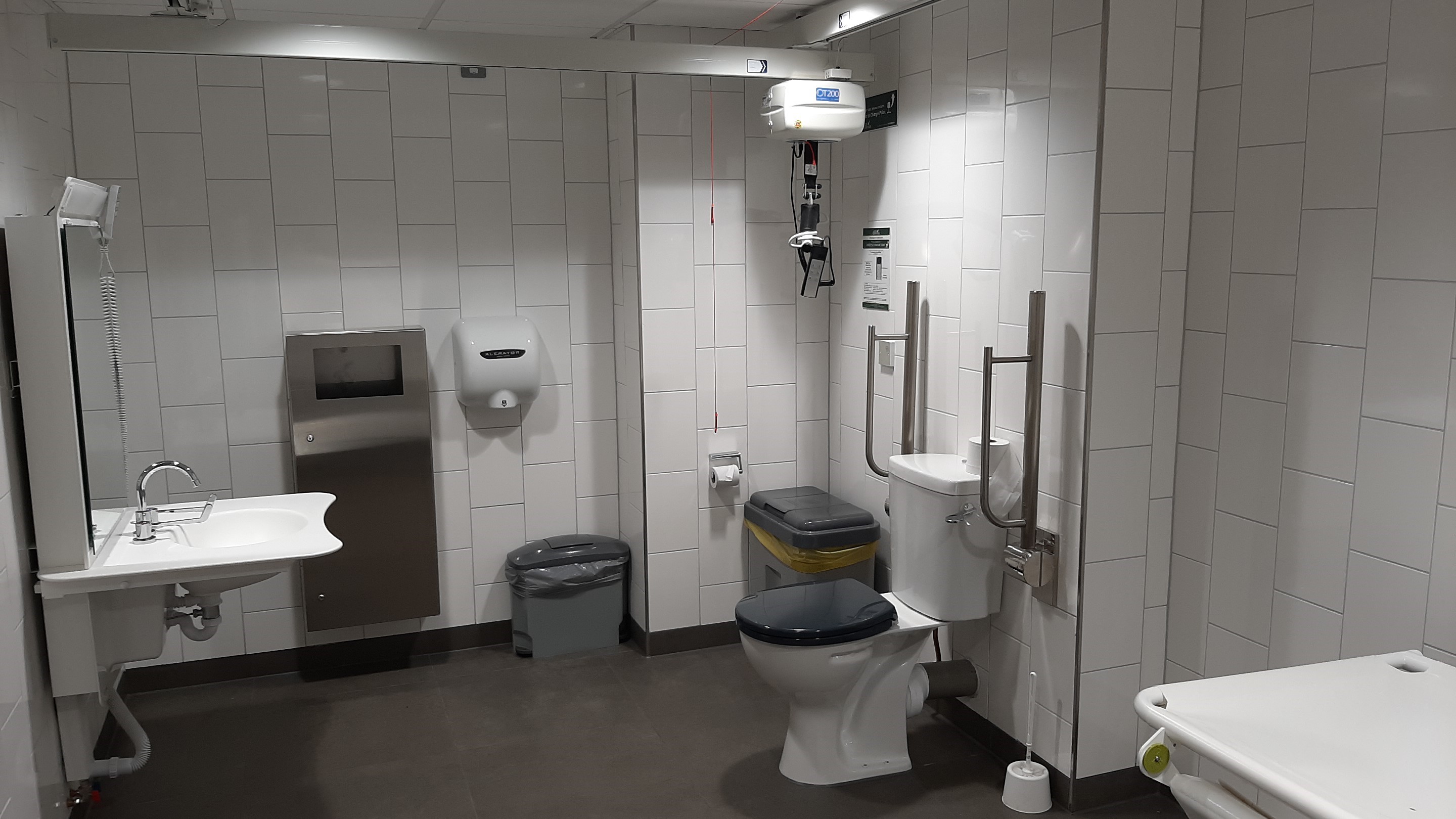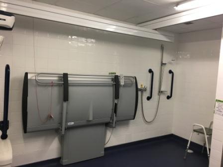 FACILITIES: Bench – Height Adjustable, Adult Sized, Free Standing | Hoist – Ceiling & Mobile | Peninsular Toilet Non-Slip Floor | Floor Space (sq. m) – 10 | Emergency Alarm | Privacy Screen | Paper Roll | Radar Key | Managed Locked | Accessible Shower