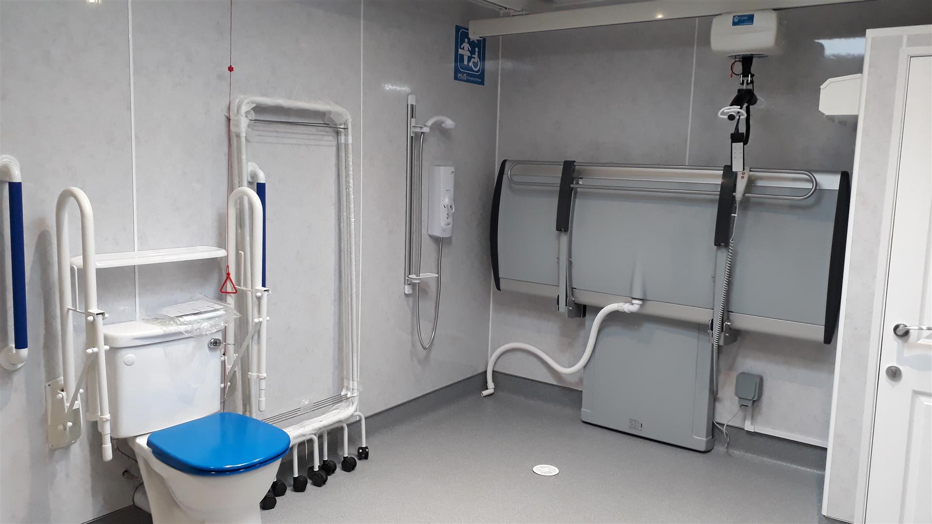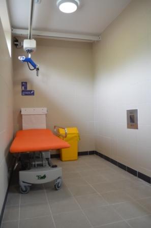 FACILITIES: Bench – Height Adjustable, Adult Sized, Free Standing | Hoist – Ceiling | Peninsular Toilet | Height Adjustable Washbasin | Non-Slip Floor | Floor Space (sq. m) – 12 | Emergency Alarm | Privacy Screen | Paper Roll Managed