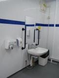 FACILITIES: Bench – Height Adjustable, Adult Sized, Free Standing | Hoist – Ceiling | Peninsular Toilet | Non-Slip Floor | Emergency Alarm | Privacy Screen | Paper Roll | Radar Key | Managed | Locked