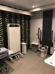 FACILITIES: Bench – Height Adjustable, Adult Sized, Wall Mounted | Hoist – Ceiling | Peninsular Toilet | Height Adjustable Washbasin | Non-Slip Floor | Floor Space (sq. m) – 12 | Emergency Alarm | Paper Roll | Radar Key Managed | Locked | Colostomy Shelf