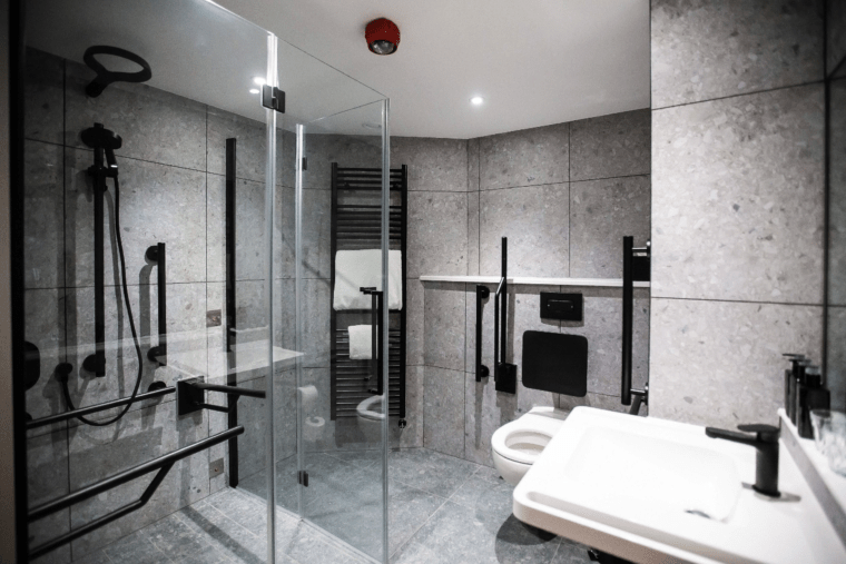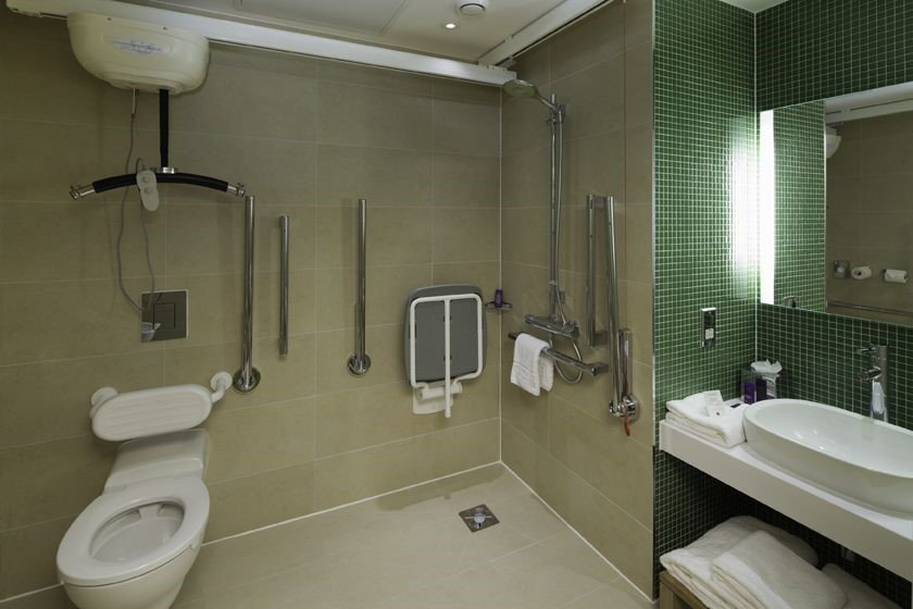 - Accessible rooms have an en-suite wet room with wheel in showers