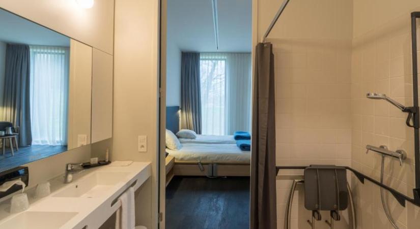 Hotel Domein Polderwind has 46 spacious and modern, accessible rooms. Most rooms are located on the first floor and enjoy a beautiful view of the polders, the lake or the greenery. We have four different room types (Comfort, Comfort Care, Family Comfort & Family Comfort Care), each with all the necessary comforts. You are welcome to stay with your dog, on request, in our Comfort Care rooms. Would you also like to have a mobile shower/commode chair, an anti-bedsore mattress or another aid in the room? Ask for it when booking, and we will be happy to provide it for free in your room.