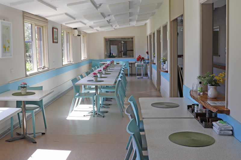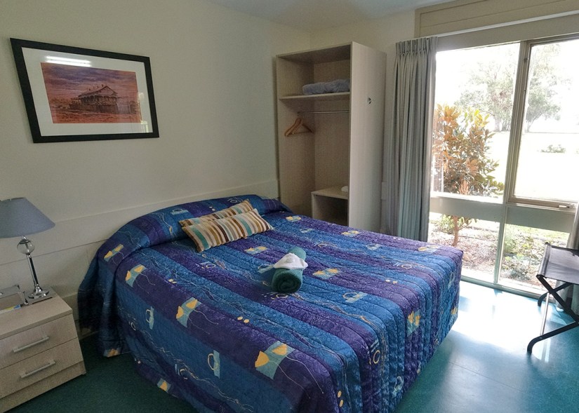 The accommodation is simple, but spacious and comfortable, with many rooms having air conditioning and their own large ensuites. Bedrooms come in varying sizes, private sole occupancy, doubles, or larger bunk rooms. Most rooms have a pleasant outlook over parklands or waterfront. The Pelican wing accommodates 75 people and the Kookaburra wing has 48 beds.