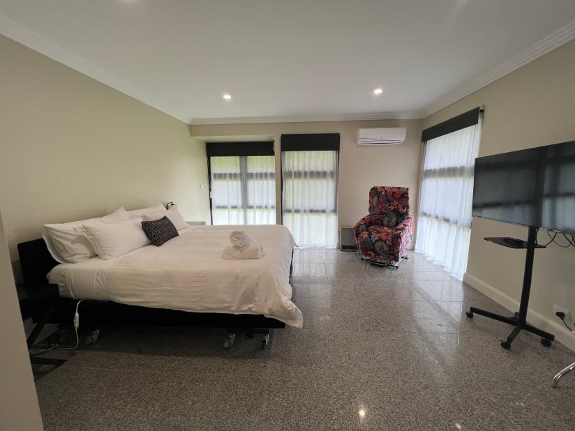 Lake Macquarie Manor Accessible Accommodation is set up with space for all to enjoy. Set on 6 acres, your home away from home has every accessible feature you could imagine: electric ho-lo beds, mobile hoist, a sit-to-stand recliner and more. The accessible generously sized King/single room includes air conditioning and a tea and coffee maker, along with a private bathroom fitted with a walk-in shower and bidet. It also offers tiled flooring, a seating area with a flat-screen TV, a wardrobe, a sofa, and heating. Shower chairs or stools, and toilet surrounds can be provided.