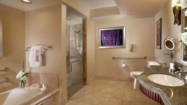 The MGM Grand has 57 accessible rooms, some of these are available with ceiling track hoists. These travel between the bed, toilet and shower/bath. The rooms either have a King size bed or two queen size beds. The bathrooms come with either a wheel in shower or a bath. Additional equipment can be arranged by request.