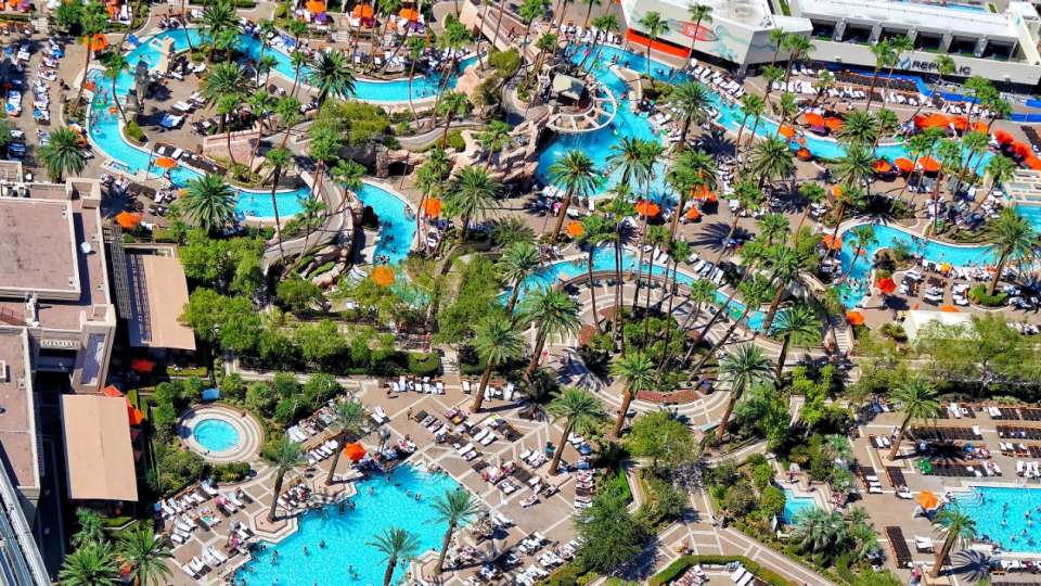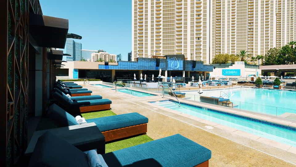 We Set The Standard For Vegas Pools: 6.5 acres of fun featuring four refreshing swimming pools, three whirlpools, cascading waterfalls and top-notch amenities. Grab a tube and float down our famous Lazy River, stretch out on a comfy daybed, enjoy a variety of food and drink options, or find your bliss with a poolside massage.