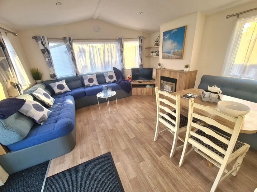 - Open plan lounge / dining room with TV, DVD Player, dining table and pull-out sofa bed