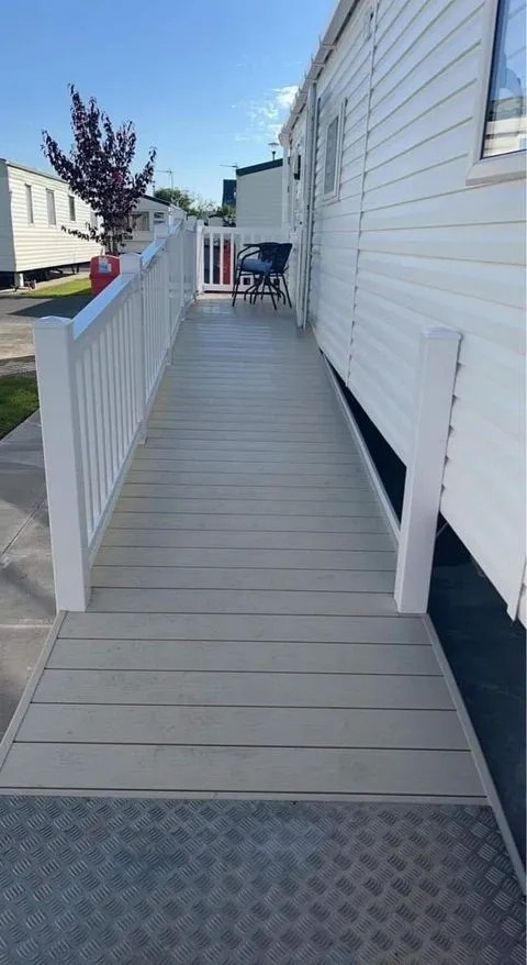 Access is via a ramp at all caravans, up to a decked terrace. Entry into the accommodation is through a door of a minimum 90cm wide and we also provide a threshold ramp stored just inside the main entrance. There is smooth, level access throughout, with sliding doors to bedrooms and wet rooms.