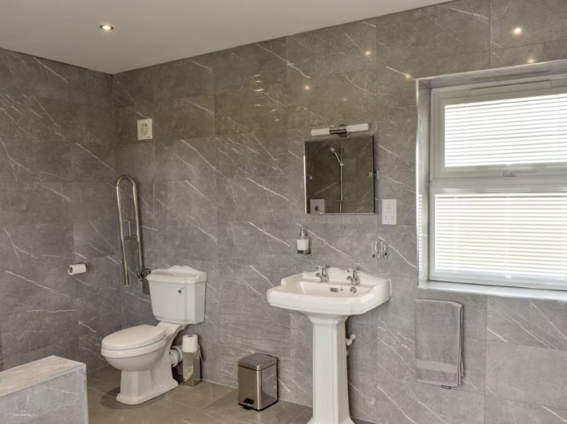 All adaptations are discreet, making this suitable for all uses. The main bedroom has a ceiling track hoist and two profiling beds, one a small double and a single 3ft. There’s also an extra-large en-suite wet room with double shower, grab rails and a wheeled shower / commode chair available on request. The second bedroom has a double bed with an accessible en-suite shower room.