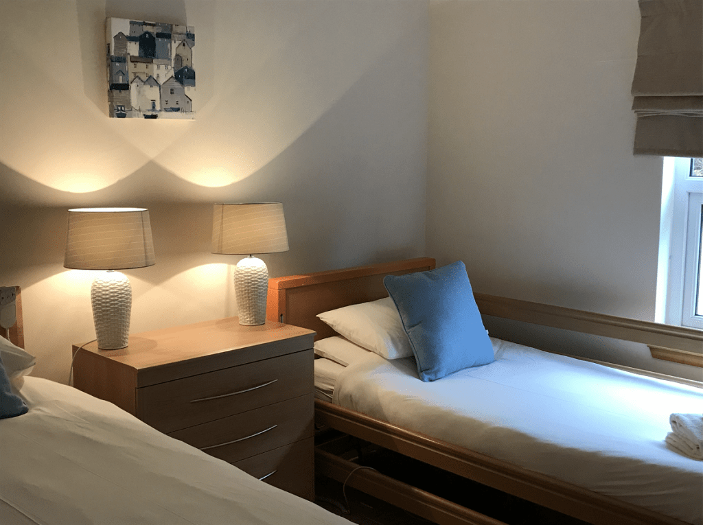 - Ground floor bedroom with twin profiling beds and X-Y ceiling track hoist