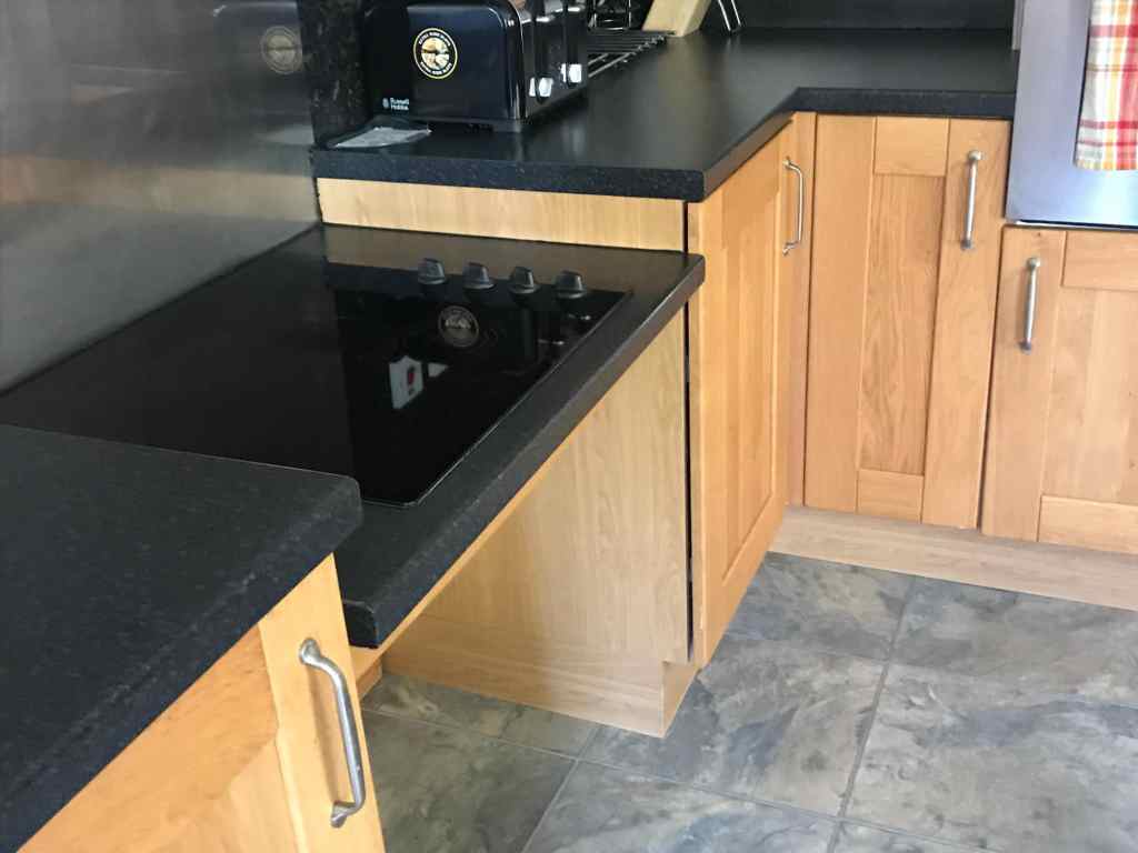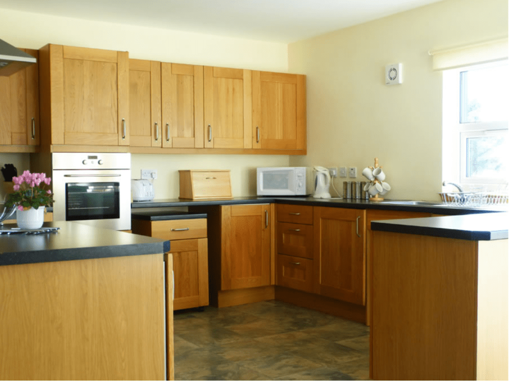 - Kitchens have some low-level worktops and wheelchair access under hob and sink