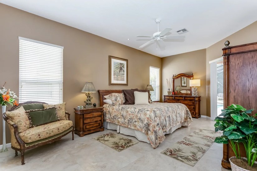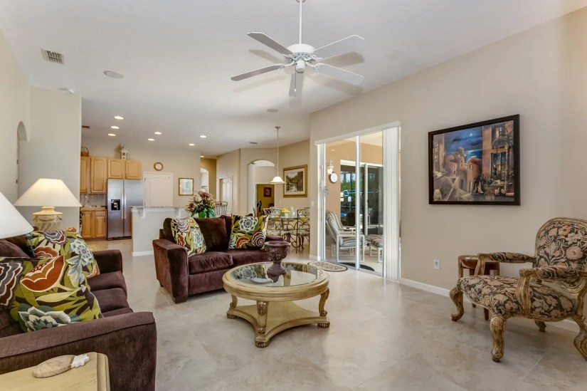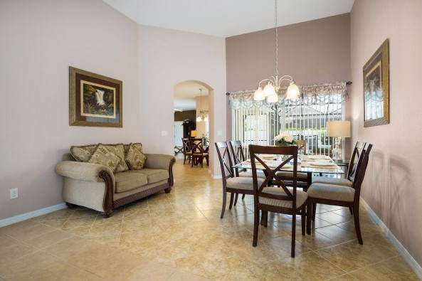 Our fully appointed Florida vacation rentals home includes large gathering rooms overlooking the private pool and spa. Luxurious Tommy Bahama style furnishings. Private office to stay connected with the outside world. 4 luxuriously appointed bedrooms. 3 bathrooms for privacy. Fully equipped kitchen with dining area, and breakfast bar, and a formal dining room to celebrate your special occasions! Golf, Tennis, Restaurants, Pubs, a Health and Beauty Spa, and Shopping just a short walk outside the front door.