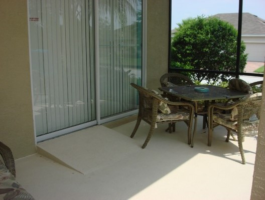 The villas have a 28 x 15ft pool with a large deck area and screen plus plenty of comfortable chairs and recliners to relax on. At night the underwater floodlighting illuminates both pools. The deck area also has a fence to safeguard children from accessing the pool. The pool has an electric pool hoist with interchangeable chair or bed. There are also ramps leading into the living room, the master bedroom downstairs and the pool shower room/toilet from the pool deck to the house.