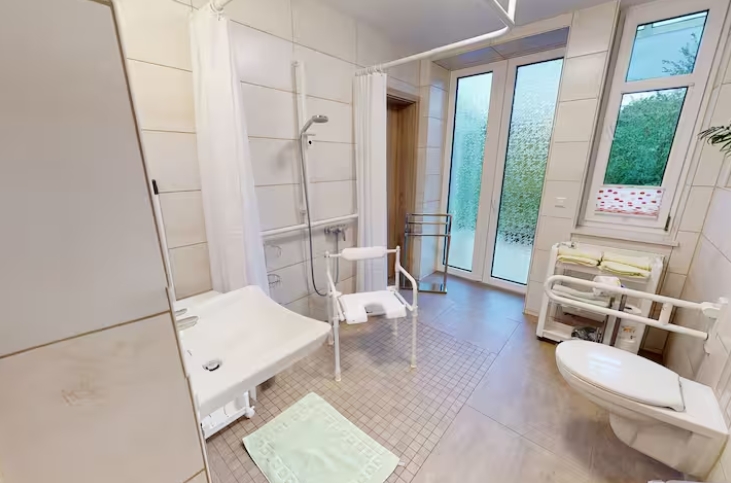 The bedrooms can be furnished to your liking with several single beds and possibly with nursing beds including an atlas sea bed. For people with disabilities, we also provide free tools such as a lift, shower stretcher, shower chairs, etc.