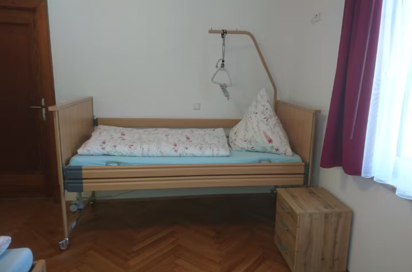 - Bedroom area with two standard singles and an electric profiling hospital bed
