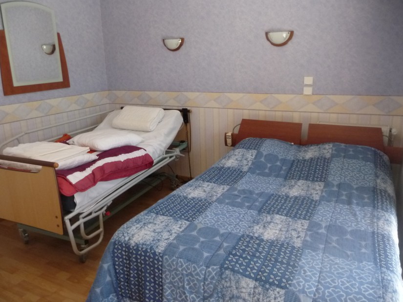 - Adapted double has a double hospital bed with pressure mattress & ceiling hoist
