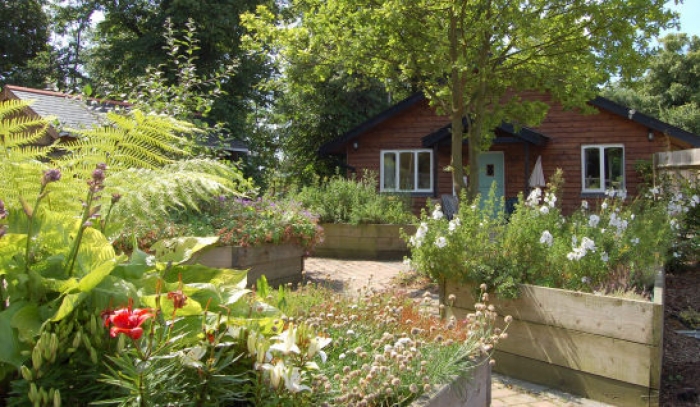 - Accessible garden with raised beds and woodland area