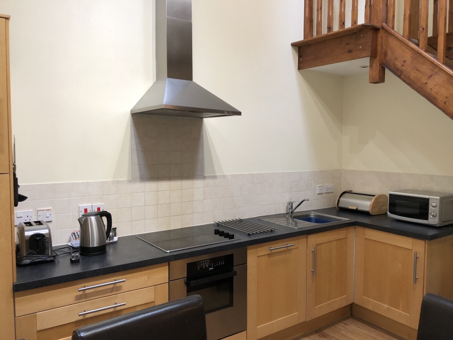 There is a lounge dining area and kitchen which is fully fitted with dishwasher, fridge freezer, microwave, oven and hob. The floor is strip wood effect vinyl, all sockets and light fittings are easy access height. There is a TV, DVD recorder, hi fi, hairdryer and free wifi.