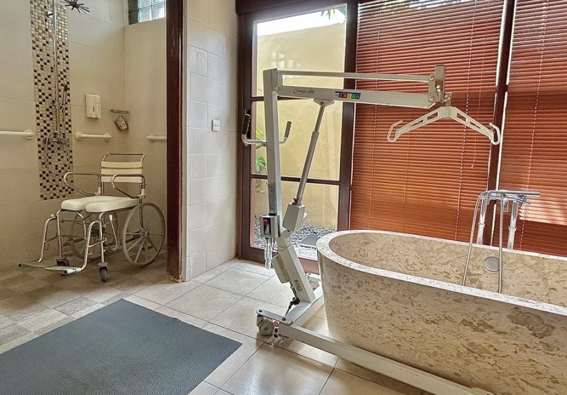 Accommodation consists of one Accessible Bedroom & bathroom, a non-accessible Bedroom & en-suite. A Lounge/Dining with Netflix. Kitchen, Massage Room, Garden. Private pool with pool Hoist, Shower Wheelchairs, mobile Hoist, Beach wheelchair, Pressure Mattress etc. A large Lounge / Dining. Breakfasts & Airport Transfers are included if you stay 7+ nights. The rooms are cleaned daily.