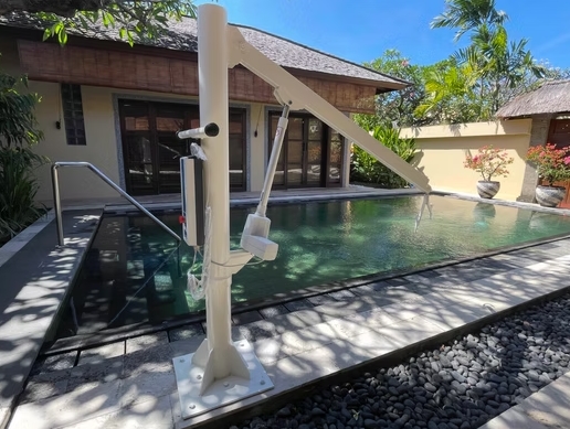 - Private outdoor swimming pool with pool hoist