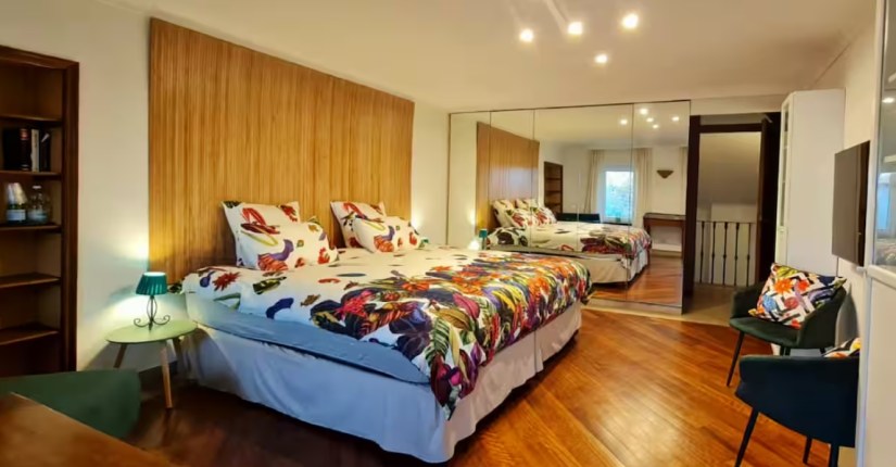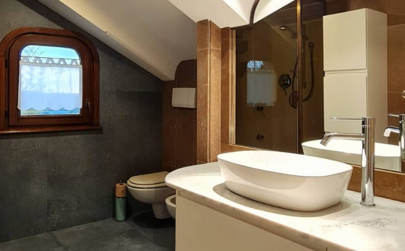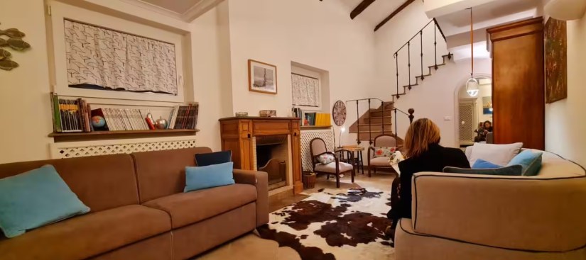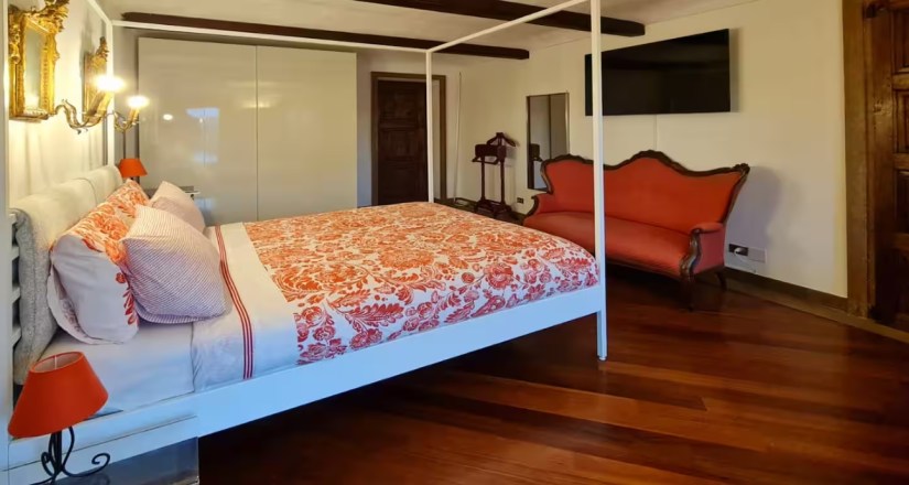 The two main bedrooms are on the first floor, one double with a four-poster bed and independent electric bases, the second with two sommiers to be used also as an extra large double bed. This second bedroom is also equipped with a sofa bed. Next to the bedrooms you will find a full bathroom with shower and mansard ceiling. The rooms both overlook the panoramic terrace, perfect for reading or enjoying the evening breeze.