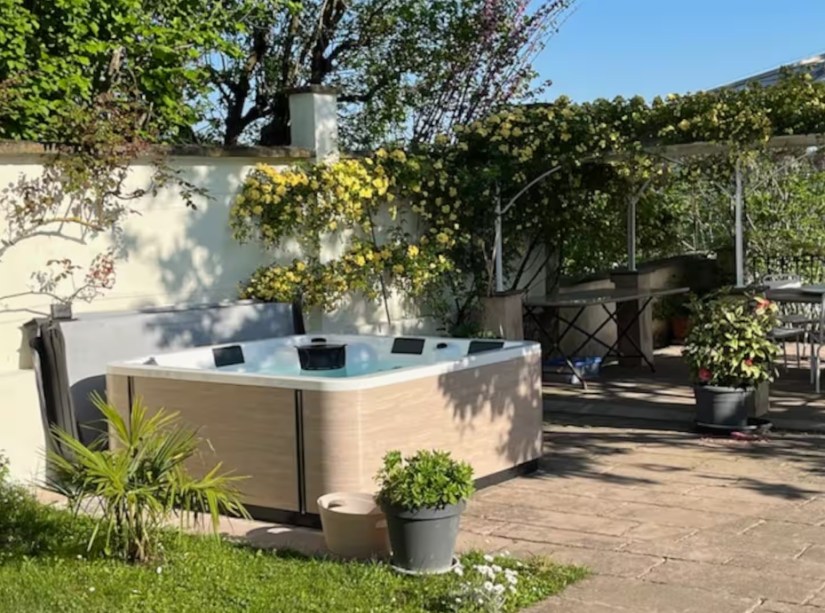 Outside you will find a flat garden with a stone table for about 8 people, protected from the summer sun by a large iron gazebo. Umbrella, armchairs and rocking chair are provided for relaxation while a B-B-Q, ping pong table & croquet game are available to use by guests.