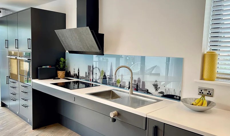 - Electronic rise & fall worktop, hob and sink with clear space underneath