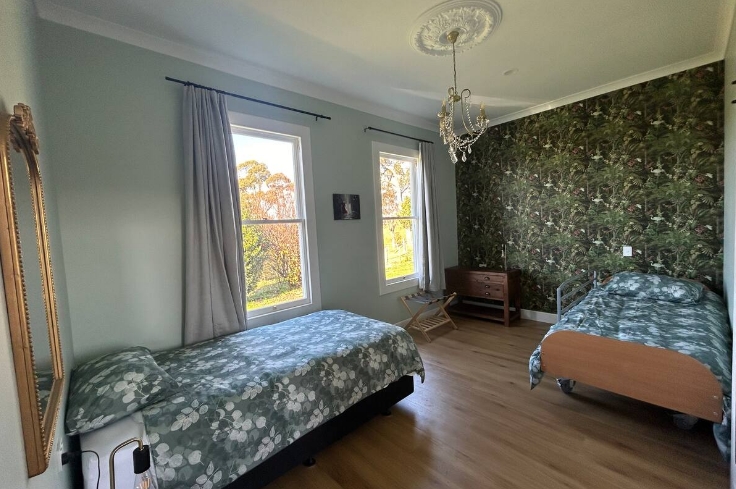The cottage has one remote adjustable bed in the spacious twin room and a full sized disability bathroom. The lounge includes a standup chair and a fold out couch bed. The cottage has ramps into the front and back of the house. Most doors are wide and the light switches low. There is a parking space but no covered parking at this stage.