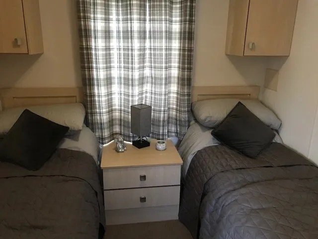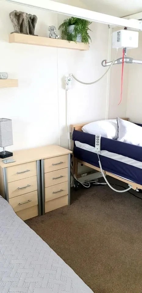 The master bedrooms are larger than you would normally find in a static caravan with a single profiling bed as well as a standard double bed and 2 double wardrobes, and 4 USB charging points. There is also a full room coverage overhead track hoist system. This room is easily reconfigured to give best access to meet your specific requirements.