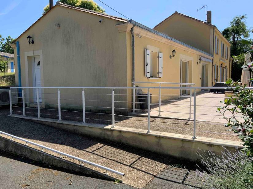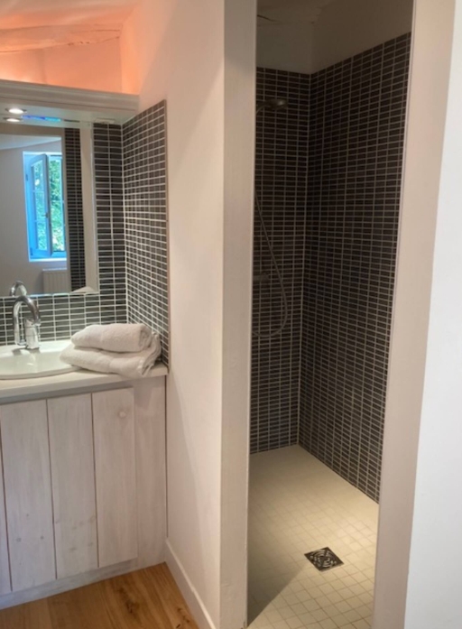 This fully accessible PMR, it consists of a living room with a sofa bed and open kitchen, two bedrooms, a shower room and a bathroom. A large terrace and private parking accompany this home. The part available for the guests is the wing of the house, it is completely independent and self-contained.