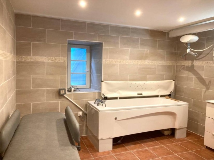 The accommodation has been designed to accommodate people with reduced mobility, especially those with severe disabilities. An access ramp provides access to the accommodation and the terrace. A ceiling track hoist in the main bedroom allows the user to move from the bed to the adapted bath in the en-suite bathroom. Additional amenities can be provided on request including a manual wheelchair and a shower chair.