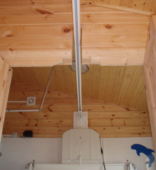 - The accessible en-suite also has a ceiling track hoist