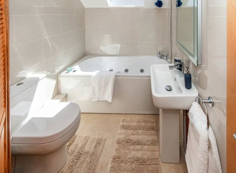 - The bathroom comes with a hydraulic bath and adjustable sink